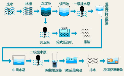 4.废水处理流程:配料负压操作,粉尘(原料)集中收集循环使用。车间废水经沉降、生化处理、过滤,达到排放标准。原料包装袋可回收造纸。